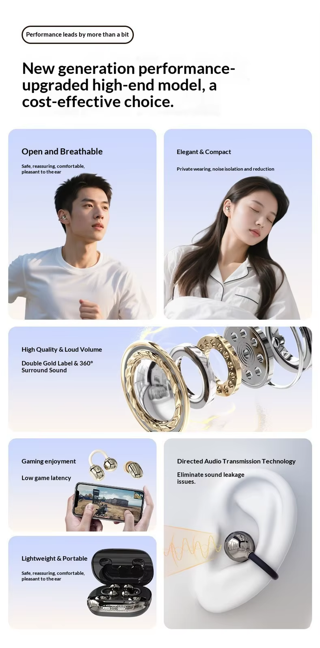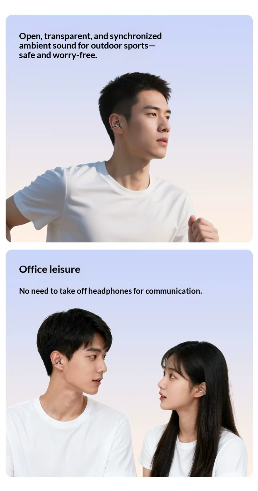 Open Ear Design: Comfortable and suitable for active use, keeping ears open.