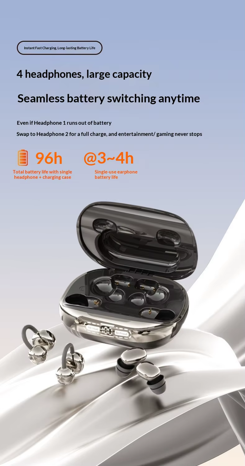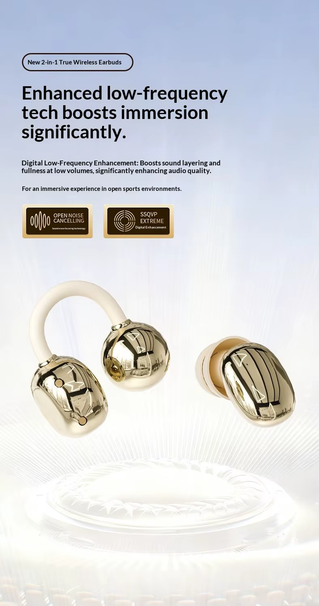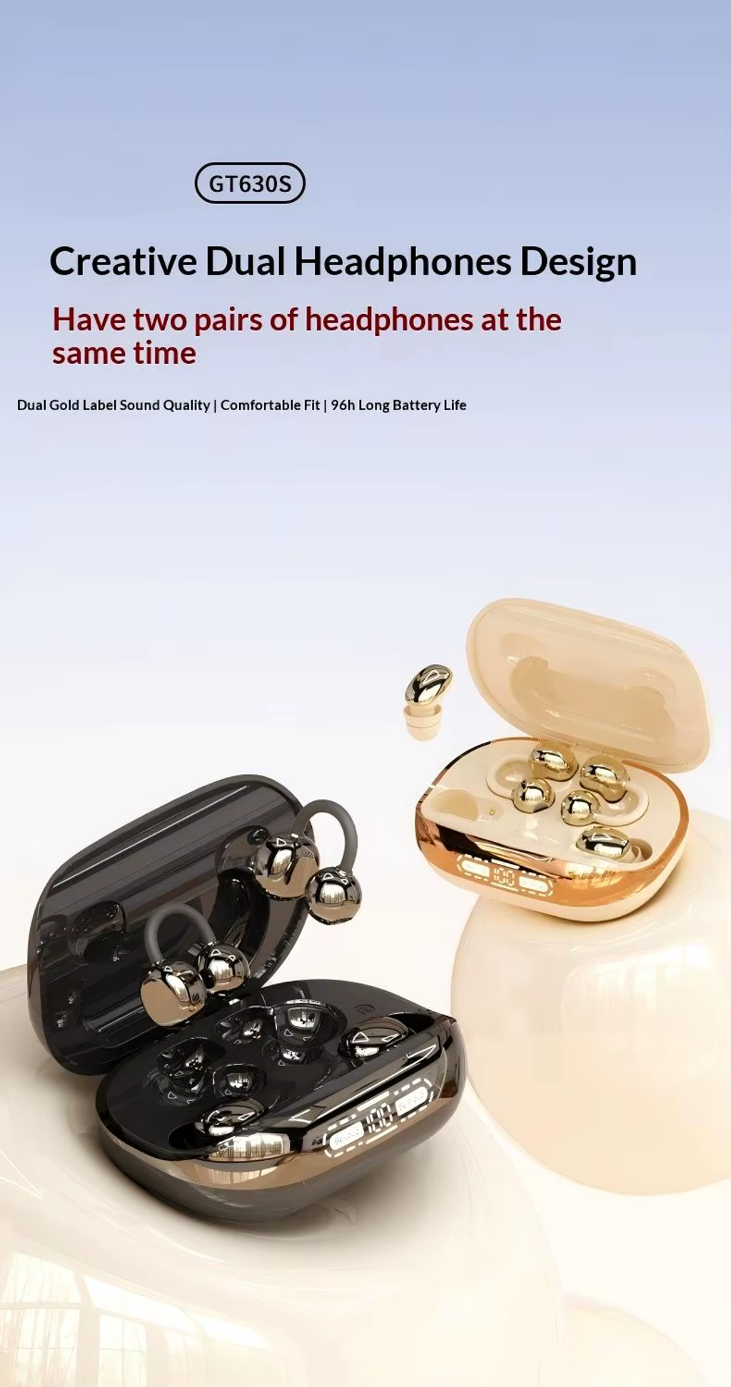 Charges your phone: Stay connected with extended battery life.Clip-on Design: Wear comfortably with no discomfort.Mini Dual Form: Compact size for easy portability.Hi-Res Audio: Enjoy clear and rich sound quality.Noise Isolation: Block out distractions for better listening.