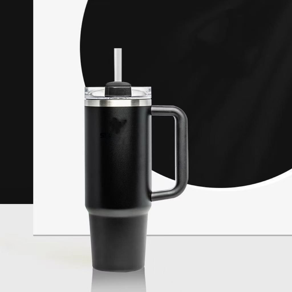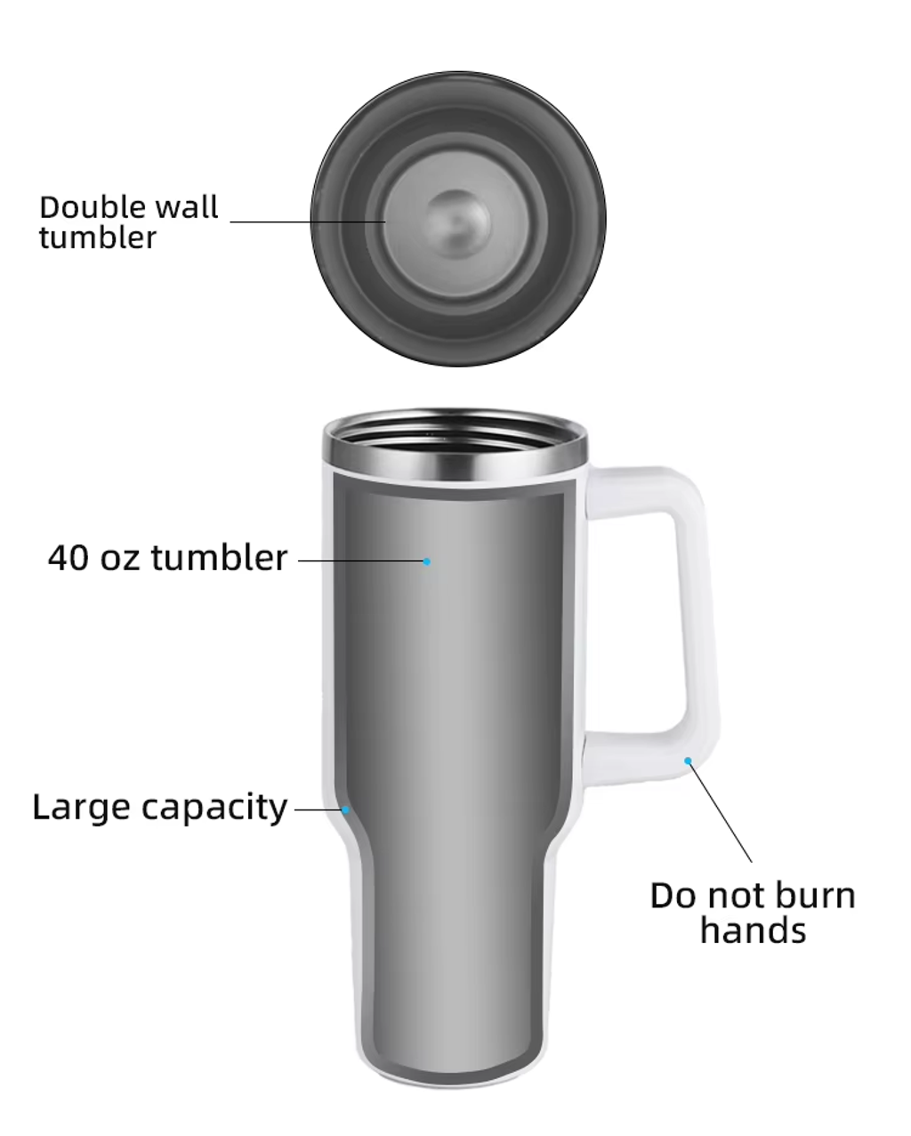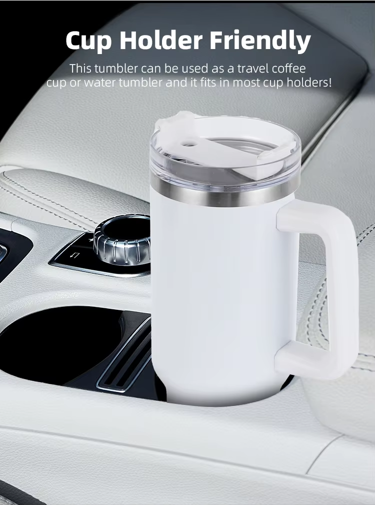 40oz Stainless Steel Tumbler with Handle Double Wall Vacuum Insulated Travel Cup Flip Straw Lid for Car Camping Office