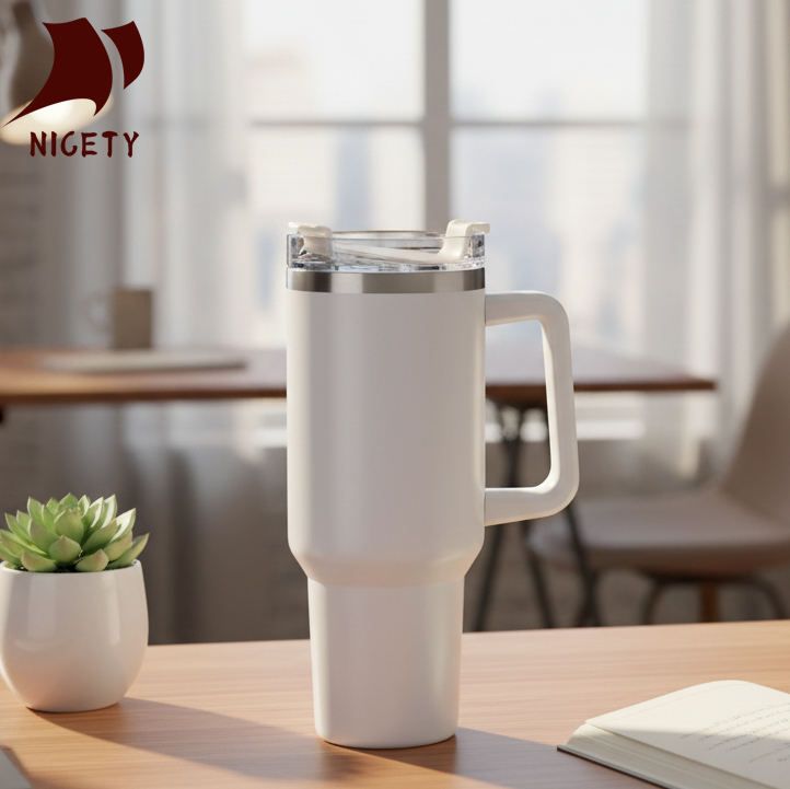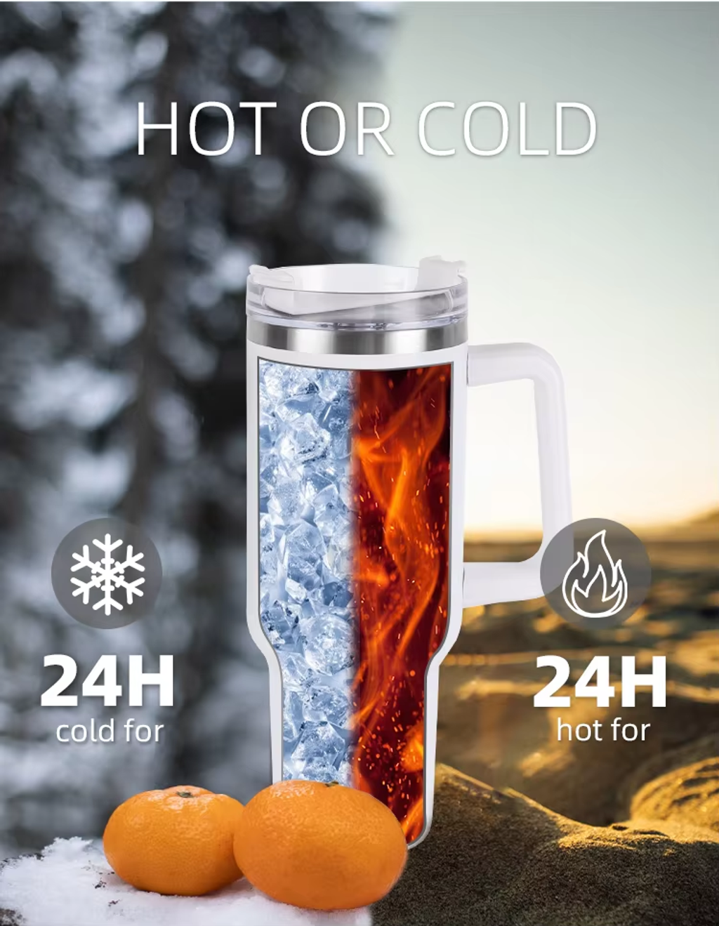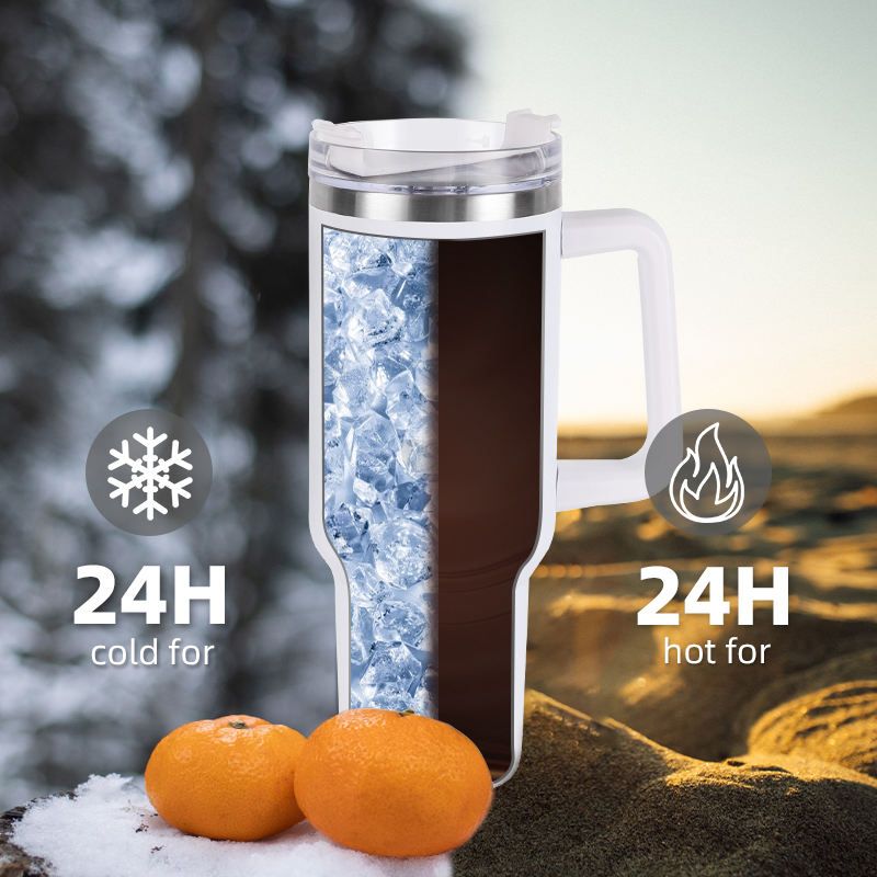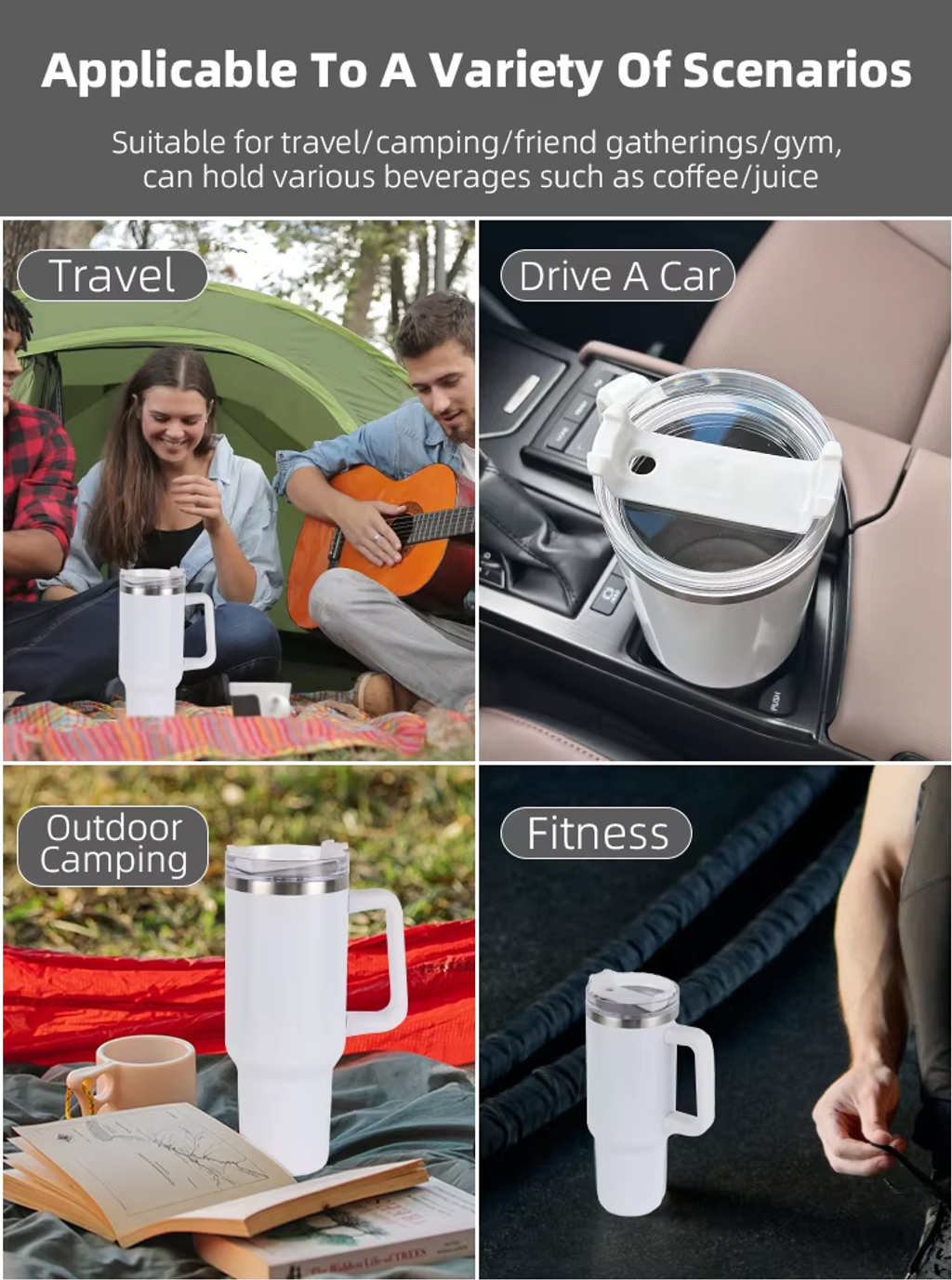 40oz Stainless Steel Tumbler with Handle Double Wall Vacuum Insulated Travel Cup Flip Straw Lid for Car Camping Office